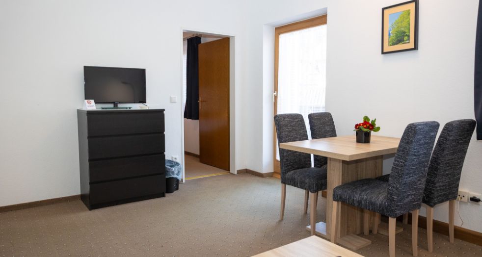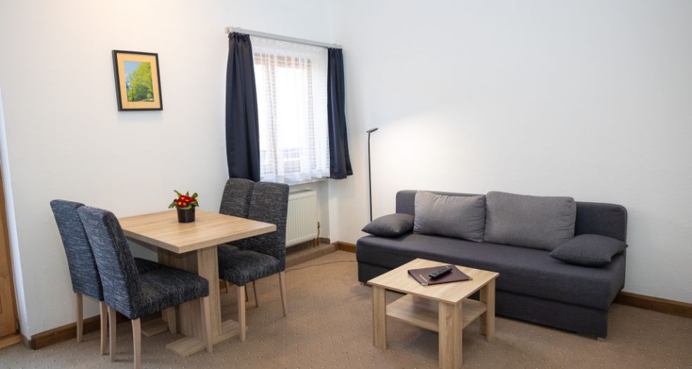 Diese Wohnungen sind zwischen 39 und 42 qm groß, aufgeteilt auf 1 Schlafzimmer und 1 Wohn- bzw. Esszimmer. Alle Wohnungen verfügen über eine Küchenzeile oder eine kleine Küche und befinden sich in unterschiedlichen Stockwerken des Hauses bzw. im Nebengebäude des Hotels.