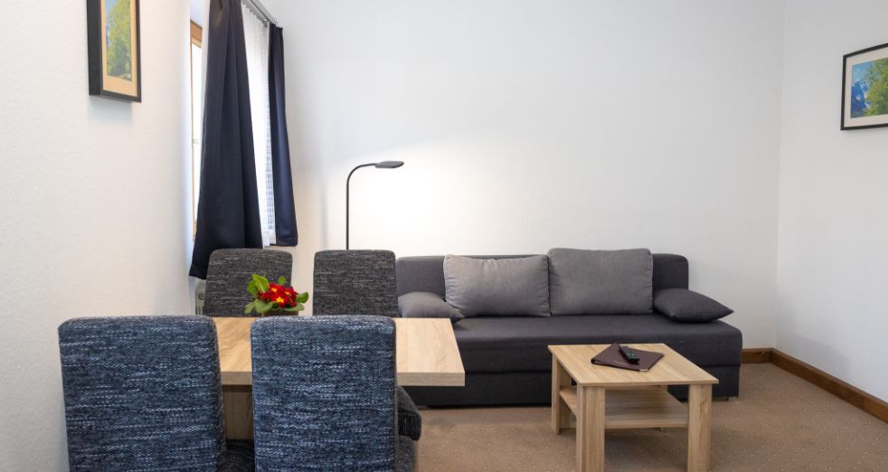 Der Berg „Wank“ ist der Namensgeber für dieses Appartement in der 3. Etage. Dieses Appartement kann auch mit 3 Personen belegt werden, da sich im Schlafzimmer eine ausziehbare Couch befindet.